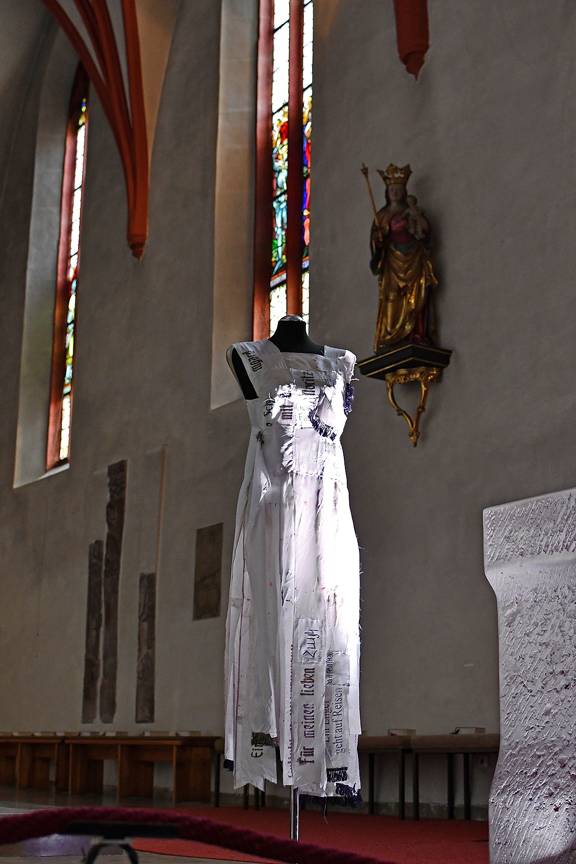 Ilona Maria Amann hat ein zweiteiliges Werk für das Kunstprojekt Da-Sein 2025 eingereicht, wovon ein Teil vom 1. bis 10. November 2025 in der Kirche St. Jakob in Schwandorf zu sehen