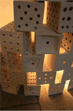 Nele Ströbels Steine machten neugierig, ihre Mauern grenzten nicht ab und aus, sondern luden ein. Sie forderten heraus zu eigenen Gedanken über den jenseitigen Raum mit seinen Geheimnissen. Die Gucklöcher in den Terrakotten mit Normziegelmaßen ließen einen Blick erhaschen auf ein Inneres, das sich in glaubender Vorstellung zu einem vollkommenen Ganzen formt. Die Lichtinstallation erhellte, was beim oberflächlichen Blick verborgen schien.