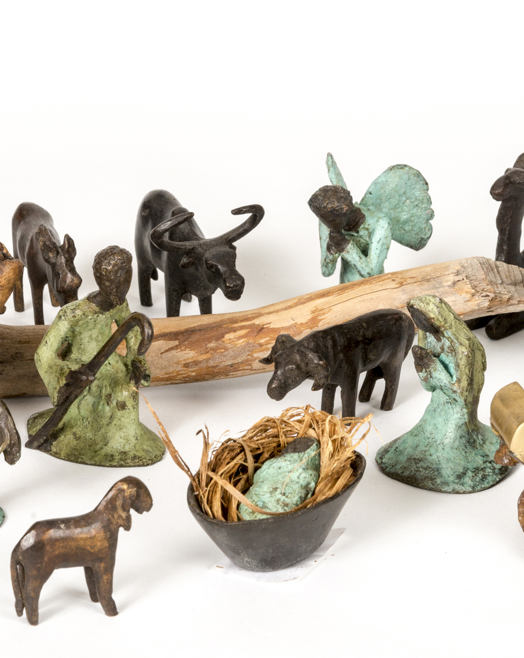 Diese einzigartige Krippe wurde in Burkina Faso handgefertigt. Talentierte Kunsthandwerker gestalten die Skulpturen im Wachsausschmelzverfahren. Für jede Figur wird nach einem Wachsmodell zuerst eine Tonform angefertigt, dann der Bronzeguss erstellt, mit Patina vollendet und bemalt.